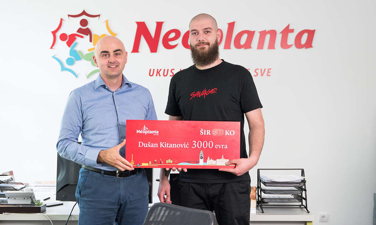 Nagrada od 3.000 evra, koju je osvojio ovim sjajnim rešenjem, biće mu naknadno uručena. Ime pobednika je objavljeno na sajtu kompanije Neoplanta http://www.neoplanta.rs/news
