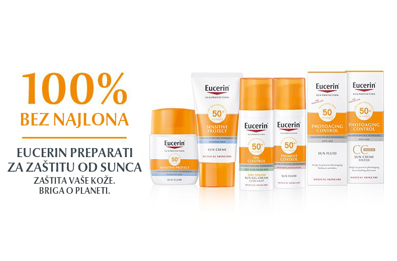 Mnogi od nas oklevaju da upotrebljavaju preparate za zaštitu od sunca zato što im smeta lepljiv i vidljiv trag koji nakon toga ostaje na koži. Istovremeno, mnoge od nas brinu njihovi štetni uticaji na životnu sredinu. Ali, sada možete da zaboravite na ove brige. Novi Eucerin® Dry Touch Gel-krem za zaštitu osetljive kože od sunca SPF 30 i SPF 50+, obezbediće vašoj koži efikasnu zaštitu bez lepljivog traga. Takođe, zahvaljujući radu tima naučnika i saradnika brenda Eucerin®, negativni uticaji Eucerin®preparata za zaštitu od sunca na životnu sredinu, svedeni su na minimum.