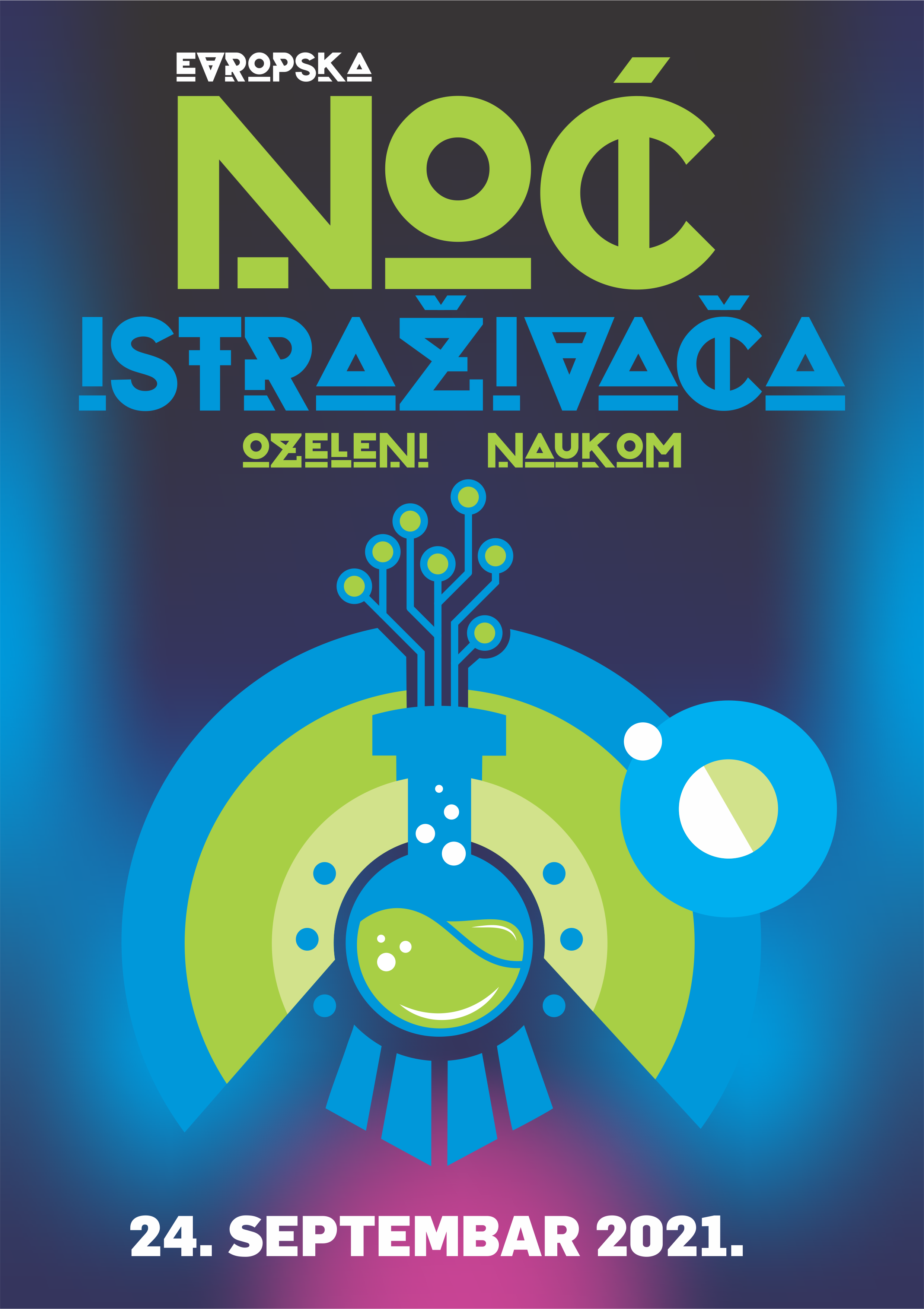 I ove godine, poslednjeg petka u septembru, više stotina srpskih naučnica i naučnika iz 11 gradova i mesta širom zemlje odlučilo je da odgovori na još jednu, dvanaestu Evropsku noć istraživača u Srbiji. Razotkrivajući naučne teorije i eksperimente, vodeći posetioce na putovanje u daleku prošlost, ali i blisku budućnost i prikazujući izbliza kako izgledaju putevi naučnika i istraživača, Evropska noć istraživača ove godine održaće se pod sloganom „Ozeleni naukom“.
