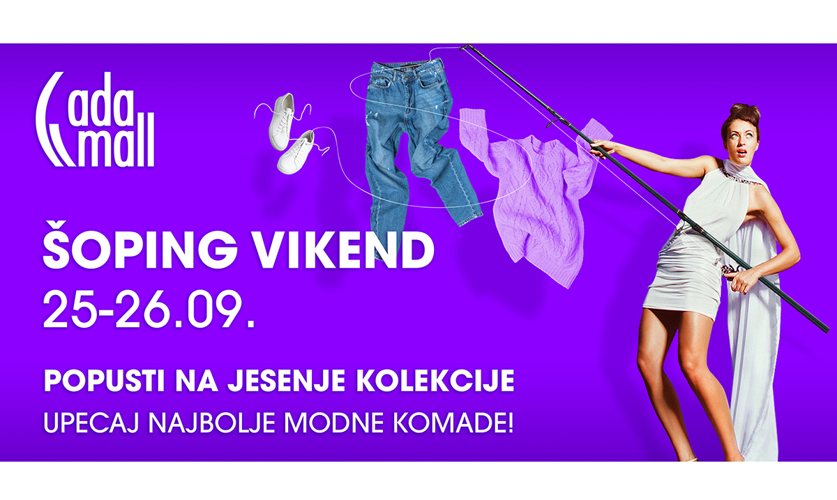 Septembar je mesec novih početaka. ADA MALL na početku modne sezone sprema posebnu poslasticu. Od 25. do 26. septembra počinje sezona lova na nove komade, specijalni Šoping vikendom u okviru kojeg ćete najatraktinije modele odeće, obuće i aksesoara za nju i njega, ali i dečijeg programa kupitu po specijalnim popustima do 50%. Dodatni popusti na letnje kolekcije i popusti na nove čekaju na vas.