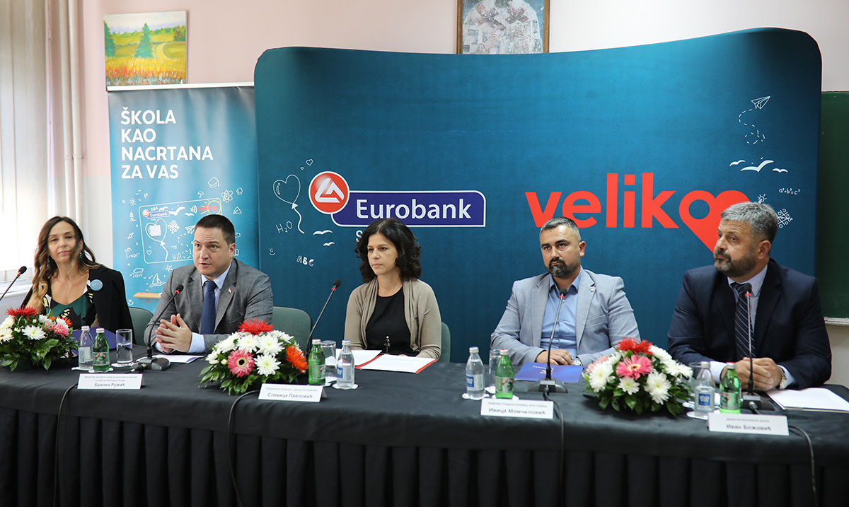 Sedmu donaciju u okviru samostalnog društveno-odgovornog projekta „Škola kao nacrtana za Vas” Eurobank je realizovala u Ekonomskoj školi u Kragujevcu. Banka je učenicima ove škole obezbedila 25 računara sa odgovarajućim serverom i drugu vrednu opremu za Bankarski kabinet i kabinet za Obuku u osiguravajućem društvu. Vrednost donacije iznosi više od 1,2 miliona dinara, a sredstva su prikupljena humanitarnom Mastercard kreditnom karticom „Eurobank Veliko srce”. Nova oprema koristiće učenicima obrazovnog profila komercijalista i službenik u bankarstvu i osiguranju u njihovom daljem školovanju.