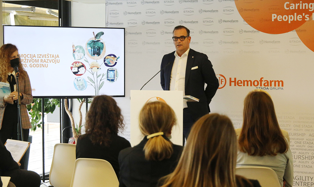 „Osim borbe za zdravlje ljudi, pandemija Covid-19 pokazala je da je upravo briga o tome koliki otisak svojim delovanjem ostavljaš na društvo i sredinu u kojoj živiš, jedan od najvažnijih doprinosa javnom zdravlju. Kada je reč o poslovanju Hemofarma u udarnoj pandemijskoj godini, mi smo nastavili da se krećemo uzlaznom putanjom održivosti. Od 6,5 milijardi tableta i drugih formi koje smo proizveli, čak 83 odsto smo upakovali u ambalažu od recikliranog kartona. Lansirali smo 17 novih brendova, a uspešne akvizicije koje je Štada sprovela, za nas su značile integraciju novih proizvoda i proširenje portfolija. Najvažnije od svega, uspešno smo odbranili zdravlje društva. Ličnim primerom smo pokazali šta znači odgovorno poslovanje u kriznim vremenima, a održivi razvoj je upravo zato bitan – on, pre svega, znači odgovornost prema zaposlenima, društvu i zajednici“, poručio je dr Ronald Zeliger, generalni direktor Hemofarma.