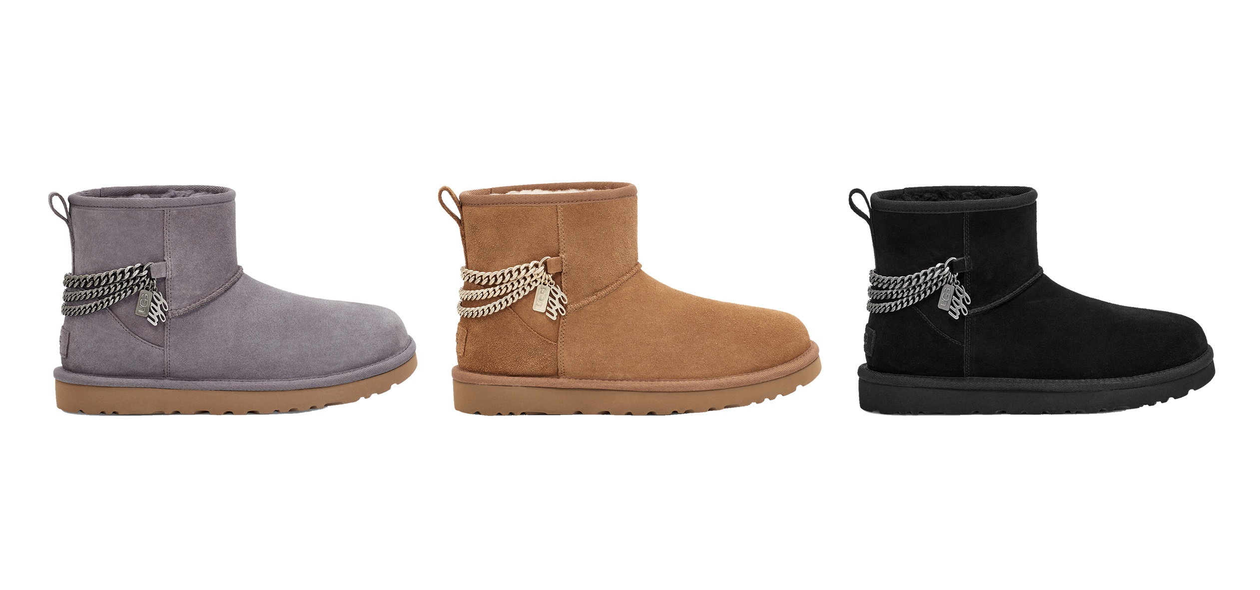Classic Mini Chains čizme sa lancem idealan su izbor kada vašem stylingu želite da date urbanu, pomalo rokersku notu. Napravljene su od meke, prevrnute kože sa postavom od UGGplush vune koja im daje prepoznatljivu mekoću. Dostupne su u crnoj, sivoj i smeđoj boji.