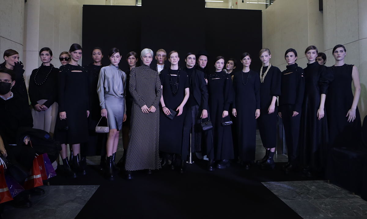 Nadaleko poznata po gracioznim kolekcijama koje odišu ženstvenošću, Dragana Ognjenović nam ove jeseni donosi kolekciju koju predstavljaju teksture delikatnih crnih perli i ornamenata na modelima, akcentovani šlicevi, koji se pojavljuju na šavovima, te siluete velikih komotnih kaputa koji reflektuju svilenkasti sjaj čvrstog satena u kontrastu sa gotovo industrijskim, metalnim rajsferšlusima kao rešenjem.