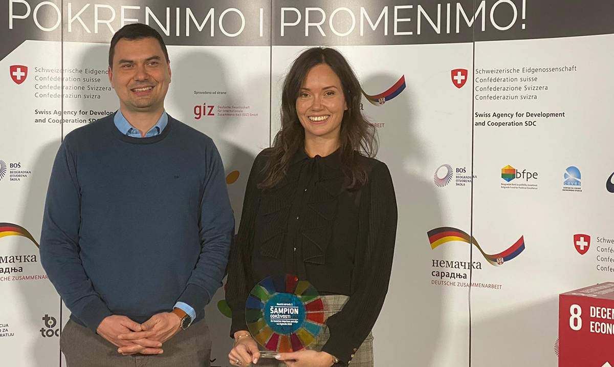 Postrojenje za prečišćavanje otpadnih voda kompanije Nestlé, u okviru fabrike u Surčinu, jedan je od pobedničkih projekata na konkursu „Šampioni održivosti“. Ovom titulom nagrađene su kompanije koje su u svoje poslovanje i strategije održivosti uvrstile Ciljeve održivog razvoja Ujedinjenih nacija i aktivno doprinose njihovom ostvarenju. Priznanje je dodeljeno u okviru „Nedelje održivog razvoja i poslovanja“, događaja koji Forum za odgovorno poslovanje i Smart kolektiv realizuju u okviru platforme „Održivi razvoj za sve”.