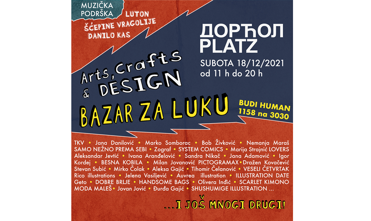 Informacije o ART, CRAFT & DESIGN – BAZAR ZA LUKU! možete naći na facebook eventu