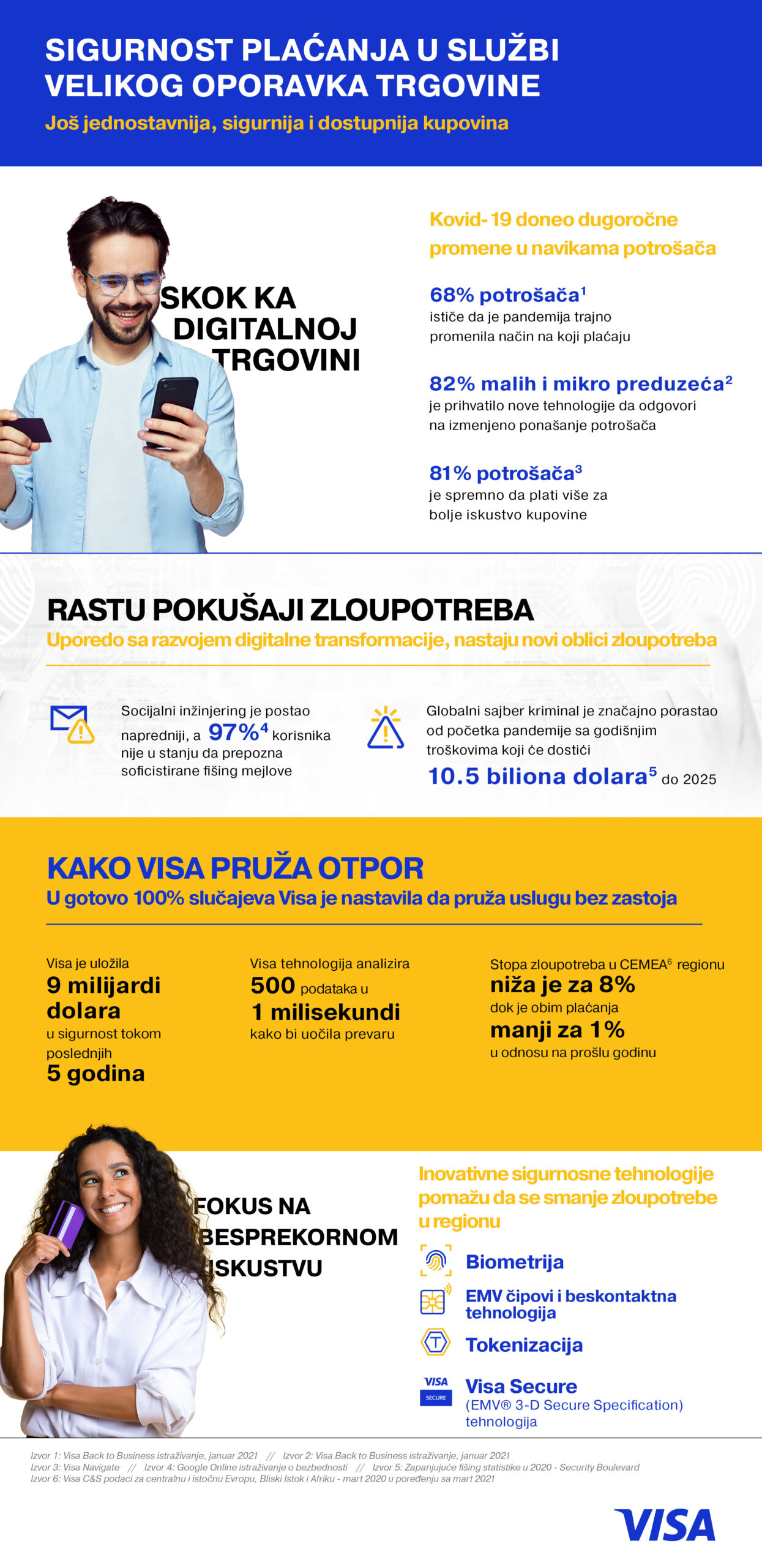 „Od početka pandemije neke kompanije su potpuno prestale da primaju gotovinu, a istovremeno je došlo do naglog umnožavanja „super aplikacija“ koje nude nove i brže opcije plaćanja. Kada pogledamo globalnu sliku, čak i u regionu CEMEA, možemo podeliti preduzeća na ona koja nisu ili su jedva preživela ovu promenu i ona koja su uspešno počela da je koriste kao osnovu za svoje poslovanje“, rekao je Nil Kaldvel, direktor za saradnju sa trgovcima i bankama u kompaniji Visa za CEMEA region.