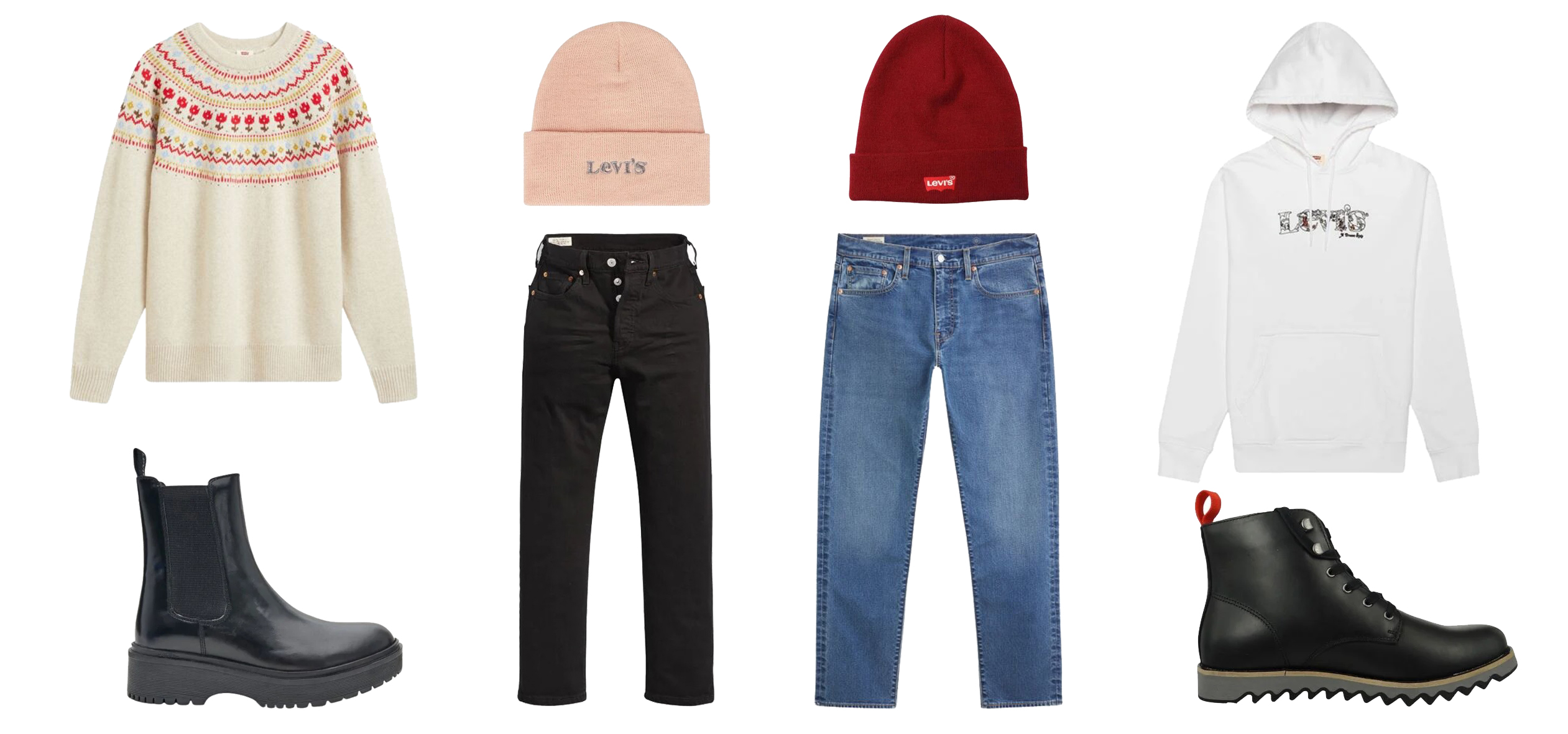 ženski džemper ženske čizme ženska kapa ženske farmerke muška kapa muške farmerke muški duks muške čizme