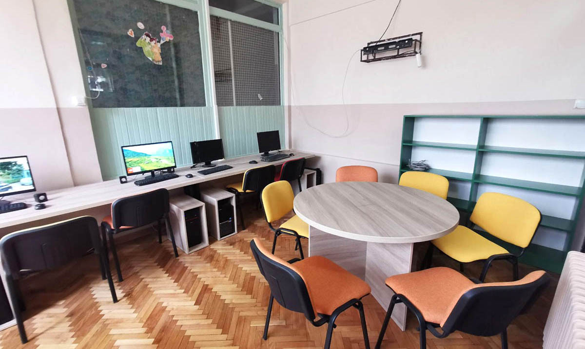 Kompjuterska soba je opremljena sa potpuno novim kompjuterima i štampačem u boji. Takođe, zidovi i pod su kompletno renovirani, a postavljene su i nove električne instalacije, internet mreža i rasveta. Prostorija je takođe potpuno opremljena novim stolicama, stolovima, policama za knjige i plutanim tablama.