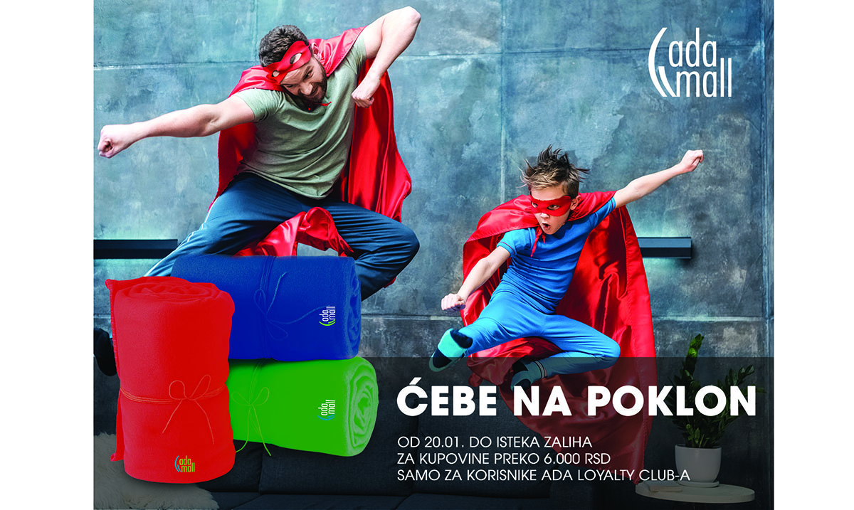 Iako po svim pravilima ne bi trebalo da nas čudi debeli minus u januaru, nije mali broj onih koje su sneg i mraz iznenadili početkom godine. Ako ste nekim slučajem rešili da smanjite svoje aktivnosti na otvorenom, svakako se možete prepustiti čarima gledanja serija, čitanja omiljenih knjiga u toplini svoga doma. Da ugođaj bude što potpuniji, ADA MALL shopping center od 20. januara pokreće akciju ĆEBE NA POKLON. Uz karticu lojalnosti i za račune preko 6,000 RSD na poklon dobijate brendirani pokrivač. Akcija traje dok traju zalihe.