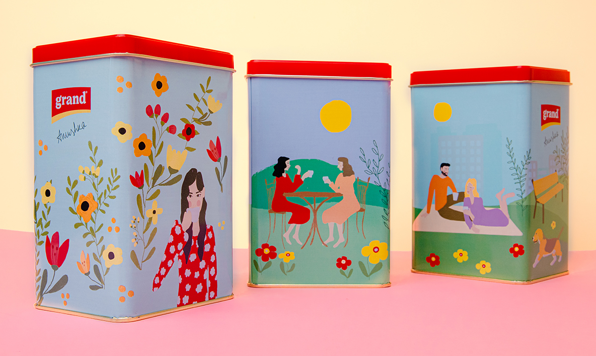 Inspiraciju za dizajn Grand kafa šoljica i limenki Ana je našla u prirodi, a rad na projektu predstavljao joj je zadovoljstvo jer u kafi uživa dok stvara i kafa je čest motiv na njenim ilustracijama. Crtežima vas vodi u svet livada, cveća i vedrih boja, unoseći radost i lepotu u sve domove.
