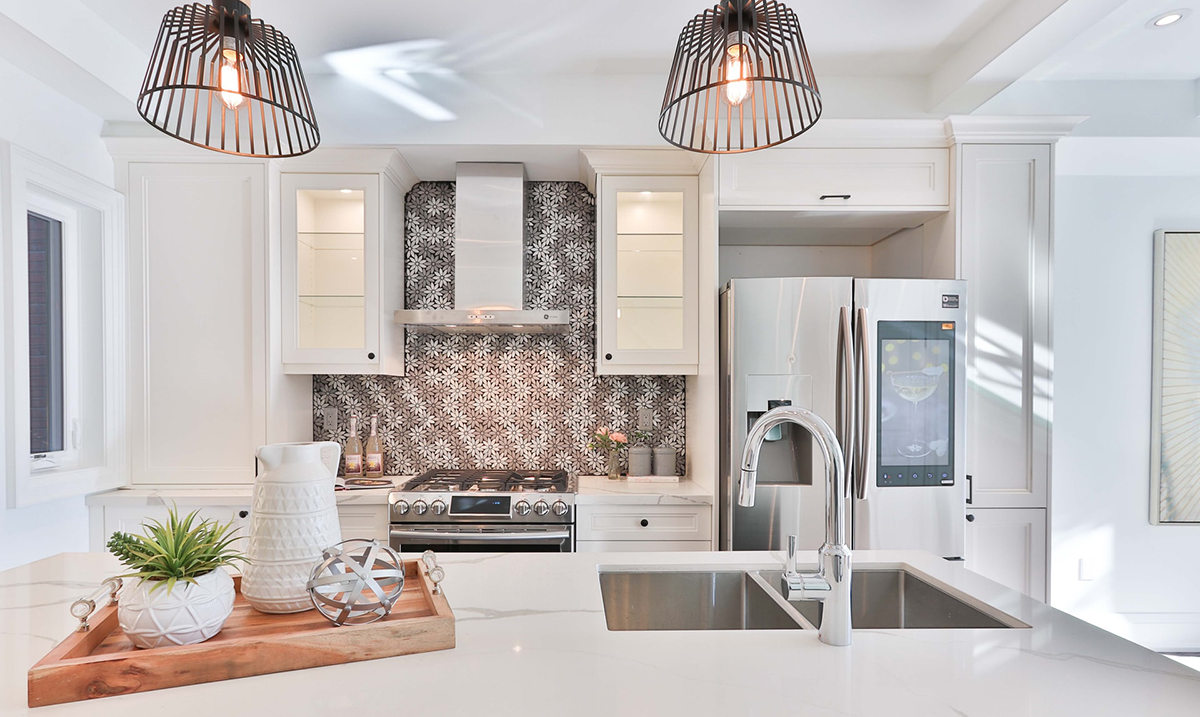 Bele kuhinje verovatno nikada neće izaći iz mode. Jedan od najboljih načina da vašu kuhinju vizuelno proširite a da joj pritom date moderan izgled jeste korišćenje elemenata koji su svetlije boje i materijala koji reflektuju svetlost. Bela boja će pomoći da prostor izgleda otvorenije i prostranije nego što zapravo jeste. Zato možete, na primer, birati dezene od belog ili sivog hrasta za kuhinjske elemente. Za radne površine i ostrva ili gornje površine šankova birajte već pomenuti beli mermer. On odlično reflektuje svetlost.