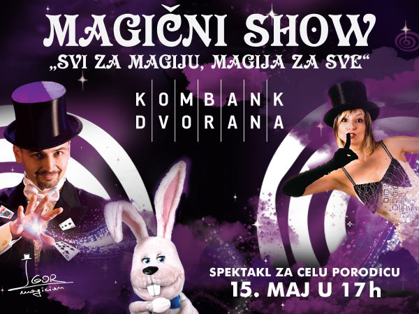 Porodični spektakl, magični show „Svi za magiju , magija za sve“, biće po četvrti put održan u Kombank Dvorani, ovoga puta 15. maja u 17h. U mađioničarskoj predstavi Igora Trifunova i njegove „magične družine“ publika će videti i doživeti najbolje iluzije koje će majstori svog