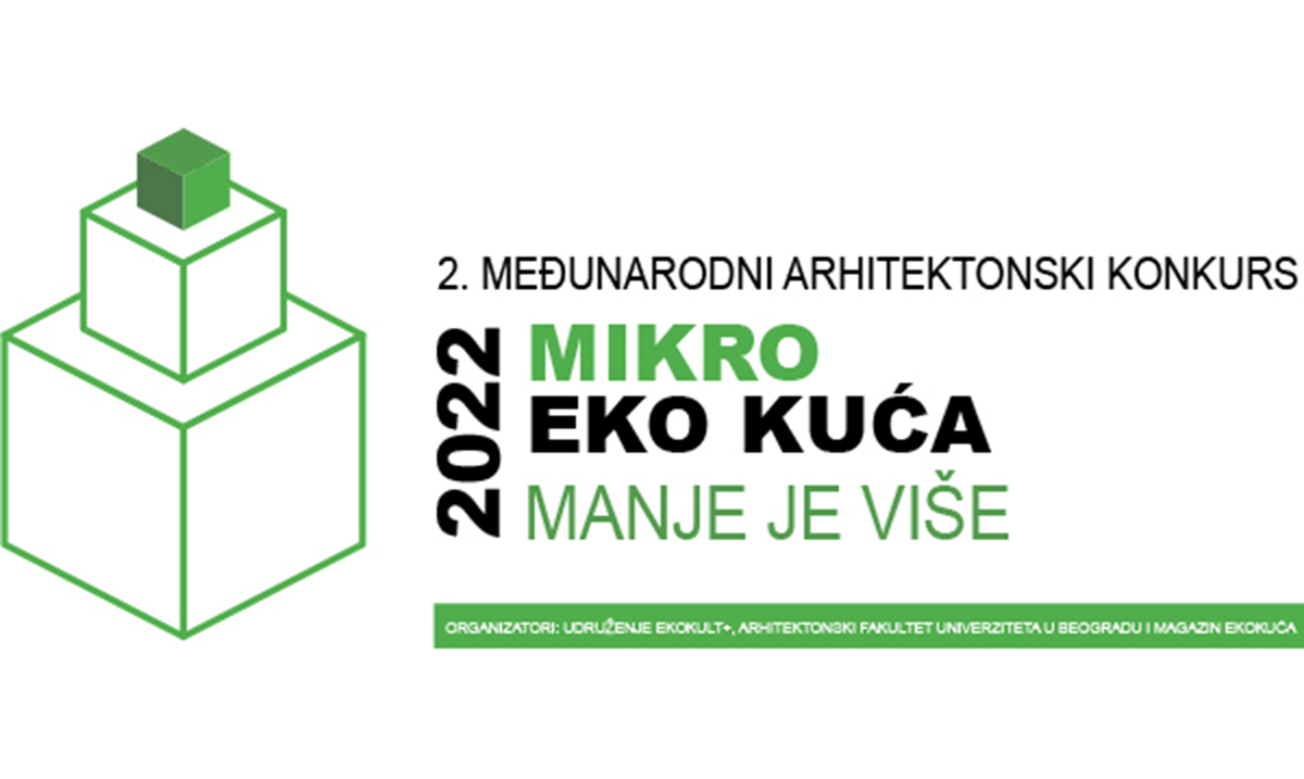 Udruženje Ekokultplus, Arhitektonski fakultet Univerziteta u Beogradu i Magazin za eko arhitekturu i kulturu “Eko kuća”, raspisuju Drugi međunarodni arhitektonski konkurs za idejno arhitektonsko rešenje na temu MIKRO EKO KUĆA 2022. Rok za predaju radova je 1. septembar, a fond za nagrade iznosi 4.000 evra.