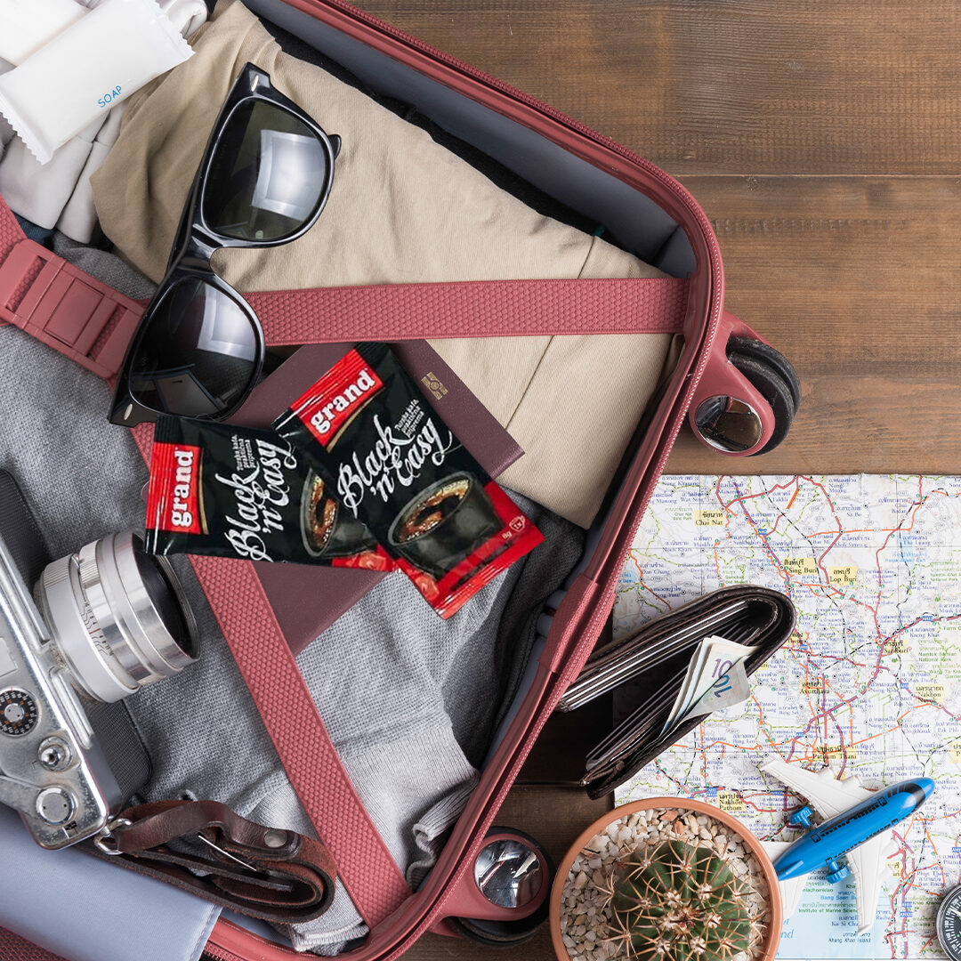 Koliko god kofer bio pun, na vrhu će biti mesta za vašu omiljenu Grand Black’n’Easy kafu. Spremna da putuje i pretvori trenutak odmora u doživljaj, lako se pakuje i još lakše priprema. Potreban je samo minut, jedna kesica i vruća voda da se prepustite uživanju, dok se poznati miris prave turske kafe meša s mirisom mora i četinara.