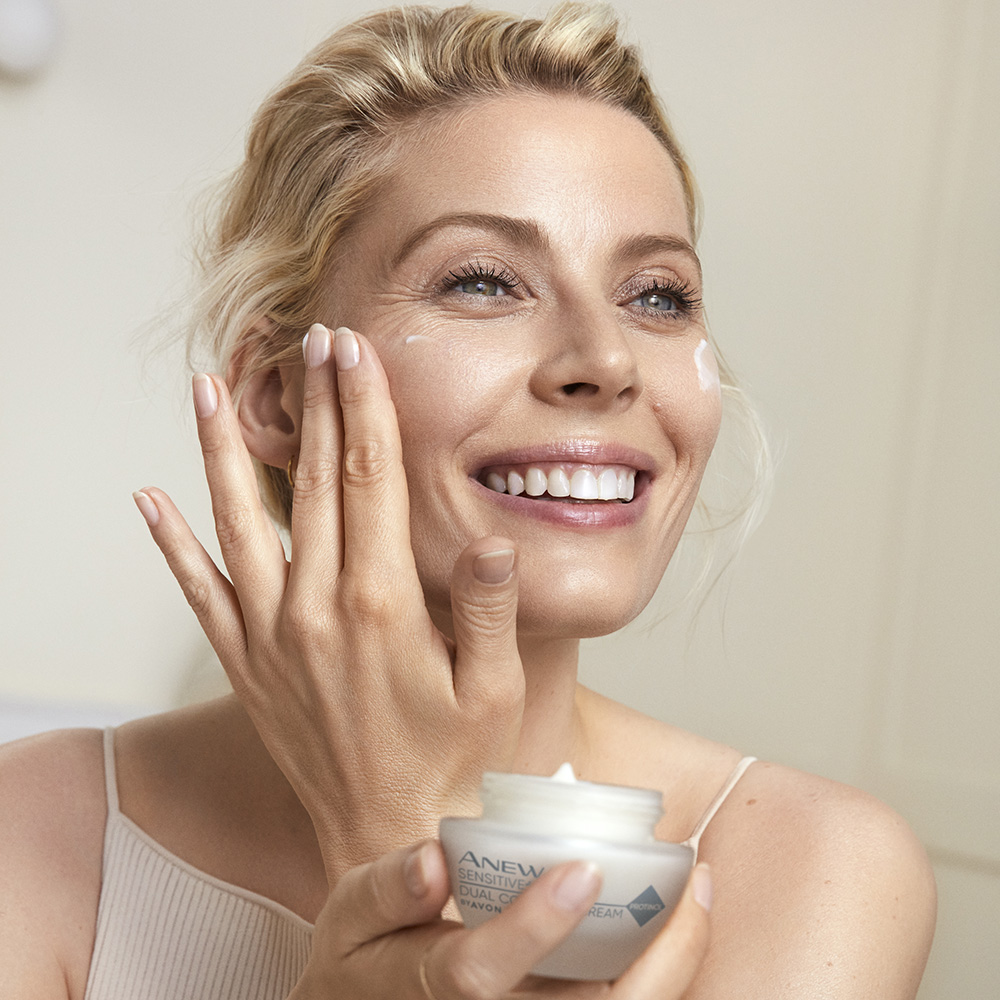 U okviru istraživanja Anew Sensitive+ kolekcije koje je kompanija Avon radila zajedno sa osobama koje imaju osetljivu kožu, nakon 21 dana testiranja utvrđeno je da proizvodi imaju umirujuće dejstvo i smanjuju crvenilo za samo 72 sata*, dok nagrađivani patentirani sastojak ProtinolTM podstiče proizvodnju dva tipa kolagena za jedriju i zategnutiju kožu. Istovremeno, pomažu da se umanji vidljivost sitnih linija i bora, i sprečavaju isušivanje, obnavljajući zaštitnu barijeru kože**.