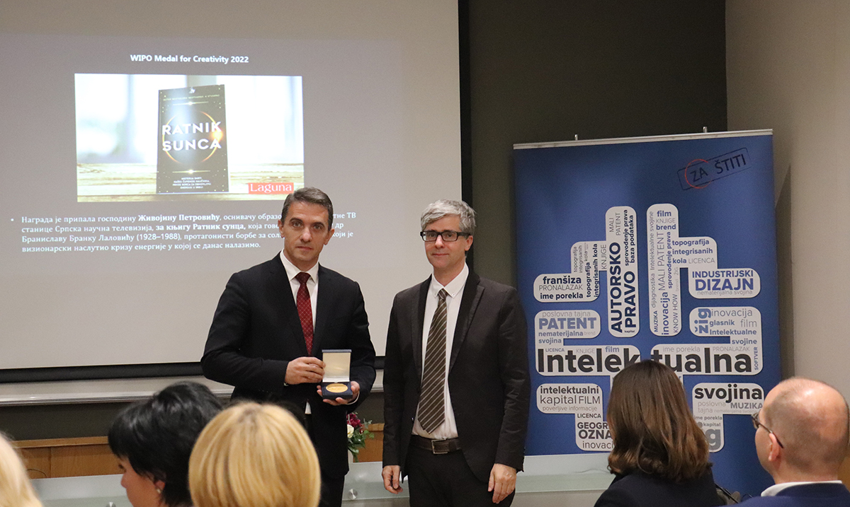 U utorak, 15. novembra 2022. u Svečanoj Sali Zavoda za intelektualnu svojinu, povodom obeležavanja 102. godišnjice ove institucije, dodeljene su nagrade pobednicima takmičenja Svetske organizacije za intelektualnu svojinu (WIPO) za 2022. godinu u pet kategorija.