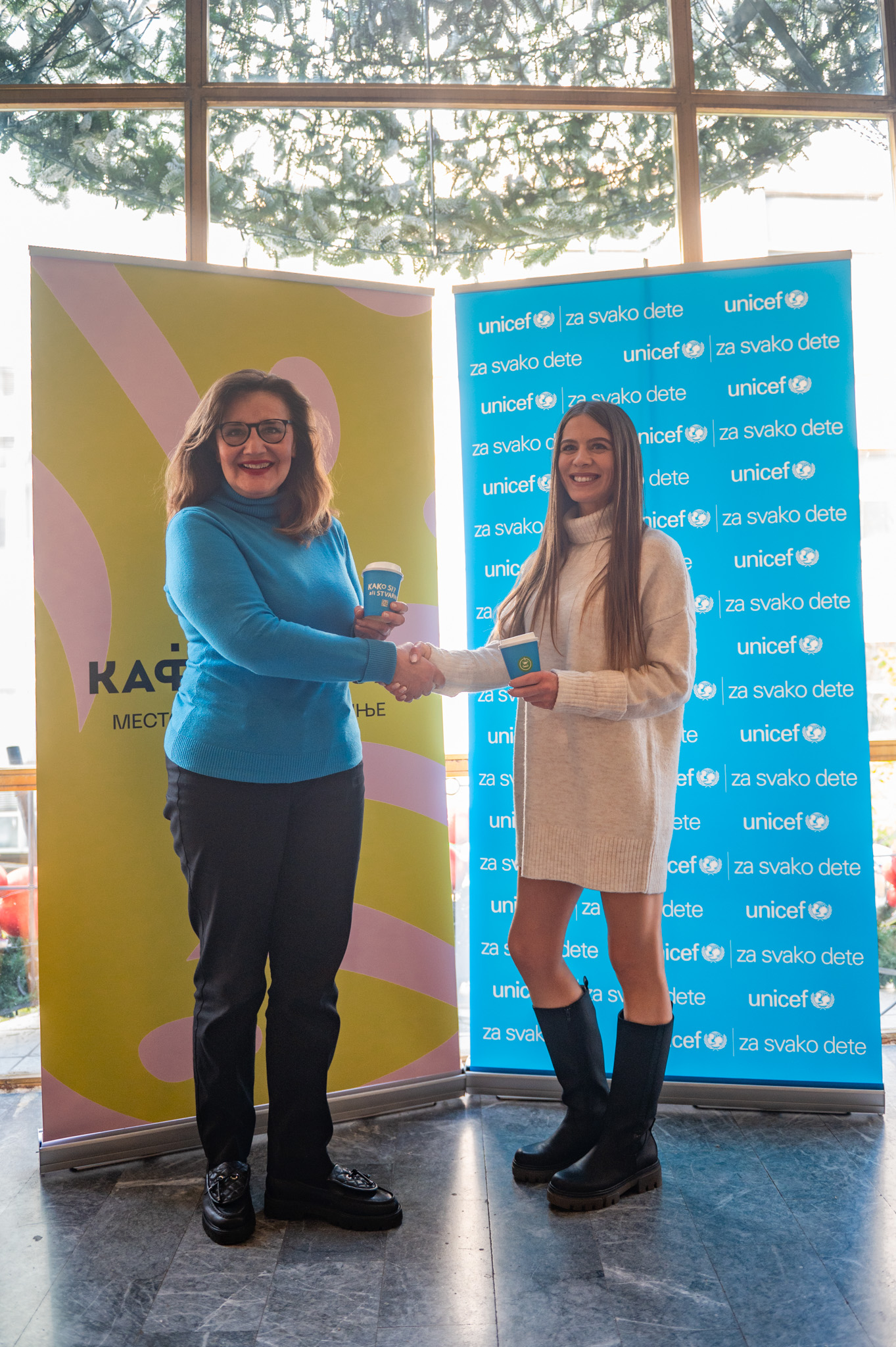 UNICEF u Srbiji i Kafeterija, najbrže rastući domaći lanac kafeterija, započeli su saradnju i lansirali novi kapućino, čijom kupovinom donirate novac za mlade u Srbiji. “Kako si? Ali stvarno.” natpis je koji se nalazi na specijalno dizajniranim svetloplavim šoljama kafe za poneti, koje imaju za cilj da podignu svest o važnosti mentalnog zdravlja kod mladih i adolescenata. Od svake kupovine kafe 50 dinara se donira UNICEF-u u Srbiji za projekat posvećen mentalnom zdravlju mladih.