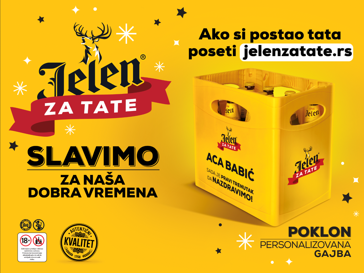 U danima kada se okupljamo i slavimo porodične tradicije i običaje, postoje oni koji slave nešto posebno. Sa željom da dodatno uveliča jedan poseban razlog za slavlje – rođenje deteta, Jelen pivo časti novopečene tate personalizovanom gajbom piva u okviru kampanje Jelen za tate.