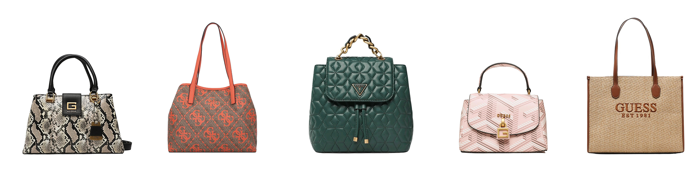 Bele patike su nepogrešiv izbor bilo da se radi o modernim modelima ili onim u retro stilu. Torbe različitih boja i dezena s istaknutim Guess logotipom, te novčanici začinjeni metalnim detaljima zaokružuju celu kolekciju.