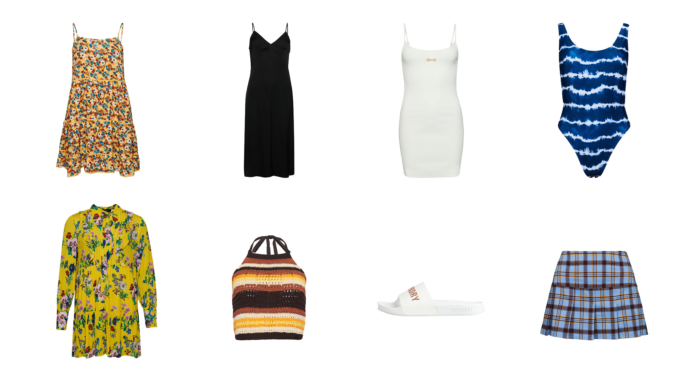 Letnja mini haljina Satenska midi haljina Uska mini haljina Kupaći kostim Žuta haljina Pleteni top Papuče Suknja