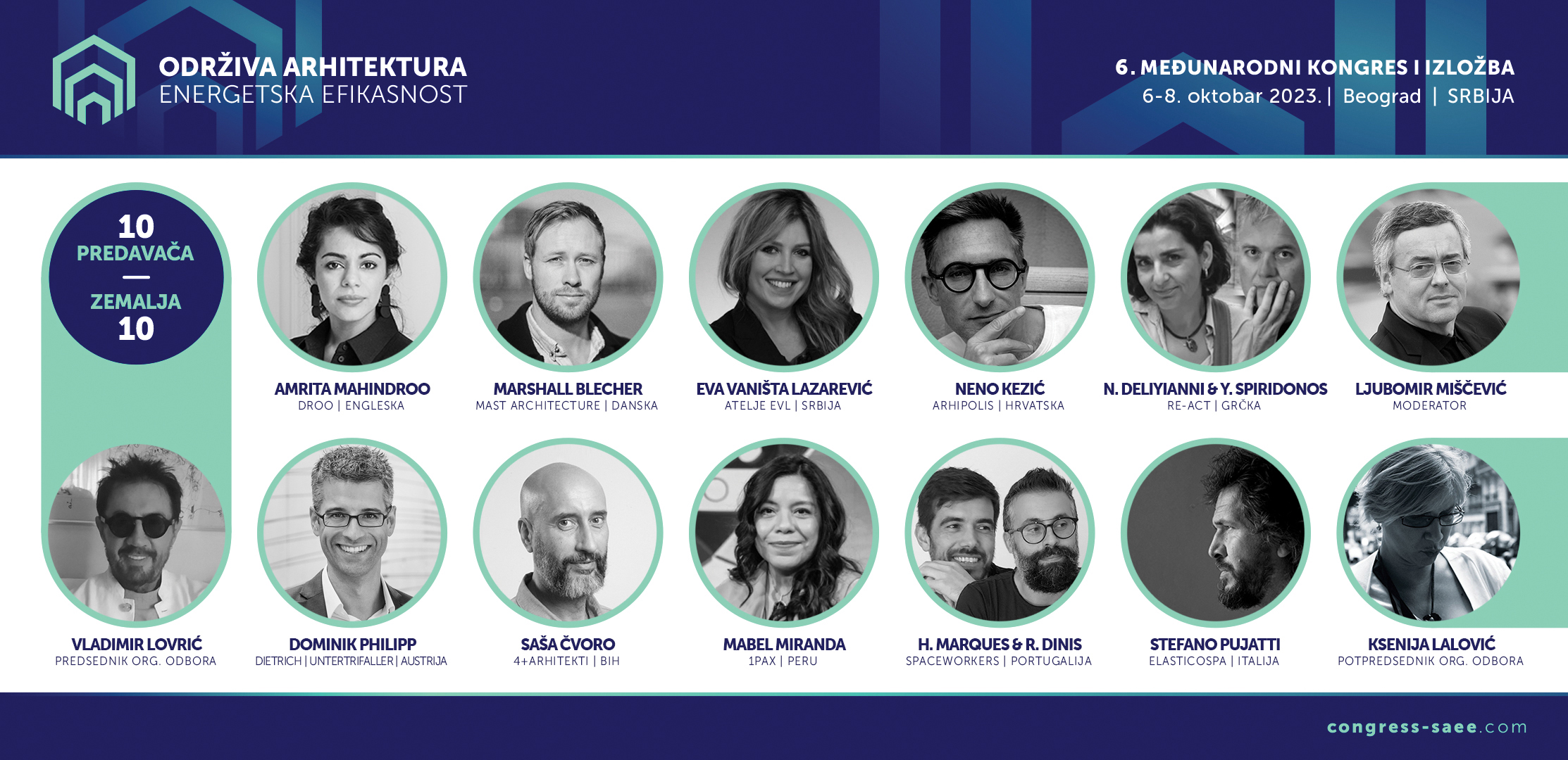 Šesta tradicionalna međunarodna manifestacija i kongres “Održiva arhitektura – energetska efikasnost” održaće se od 6. do 8. oktobra 2023. u Jugoslovenskoj kinoteci, sa svečanim otvaranjem 6. oktobra u 19 sati.