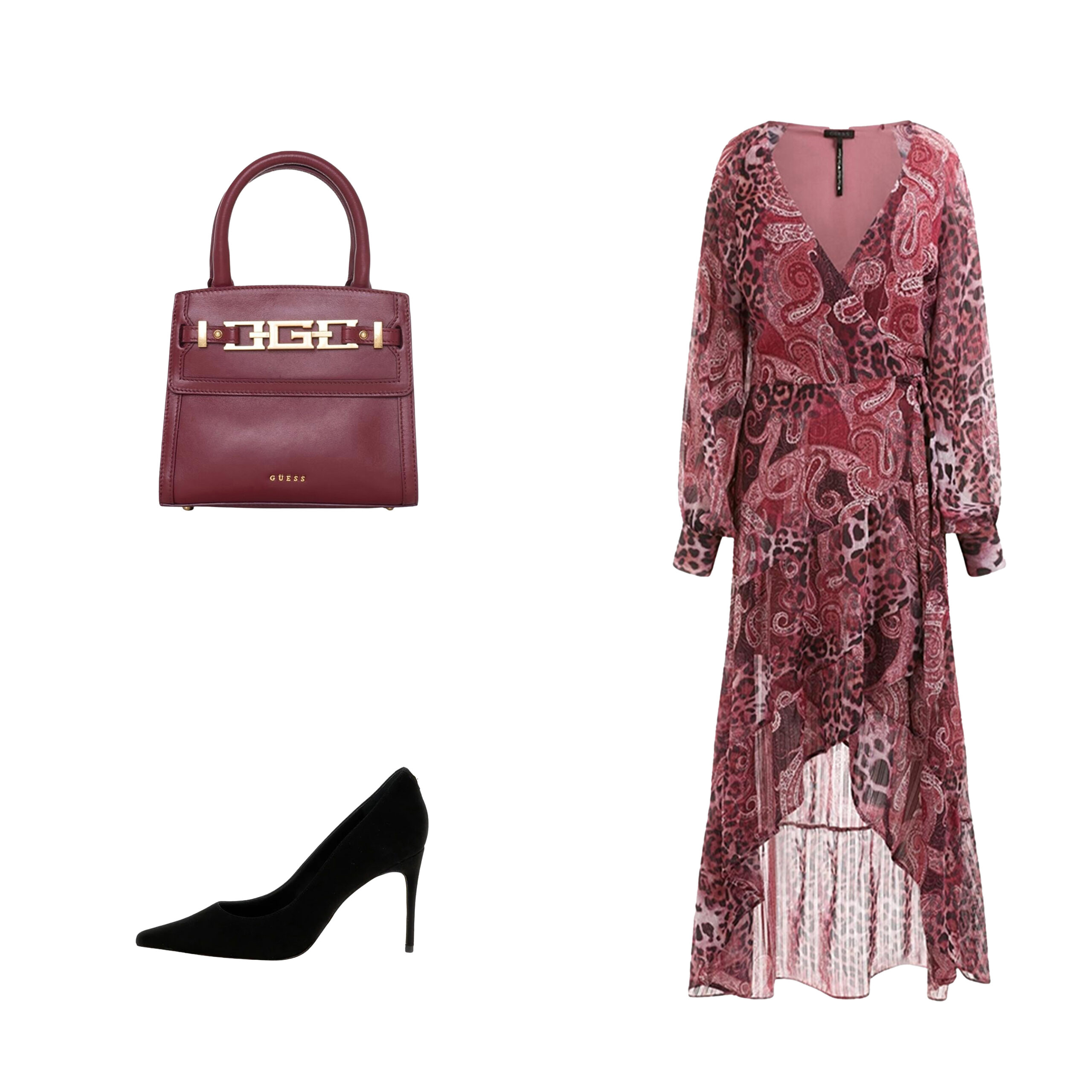 Za glamurozne prilike neka vaš izbor bude duga asimetrična haljina sa karnerom koju možete iskombinovati sa bordo torbicom koja sadrži logo detalje u boji zlata i crnim salonkama, koje će outfitu dati dodatnu dozu elegancije. Ukoliko želite malo opušteniju, ali i dalje svečanu varijantu, komplet od tvida, kožne čizme sa štiklom i torbica su savršena kombinacija.