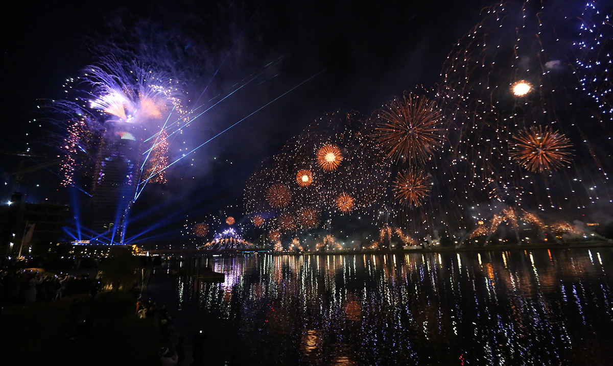 Pyrotechnic show and multimedia spectacle from the Belgrade Tower and on the Sava bank in New Belgrade, the Old Sava Bridge and the Gazelle as part of New Year’s Eve in Belgrade on the water.Pirotehnicki sou i multimedijalni spektakl sa Kule Beograd i n