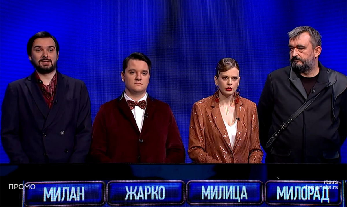 Na samom početku voditelj Jovan Memedović najavio je nesvakidašnje izdanje kviza i predstavio u nekom malo drugačijem svetlu, svima već dobro poznate Tragače. Na pozicijama na kojima obično gledamo takmičare, stajali su Milorad Milinković, Milica Jokanović, Žarko Stevanović i Milan Bukvić. Osim toga što su ovoga puta stajali na suprotnoj strani studija i bili timski igrači, još jedna stvar nas je zatekla. U duhu praznika Tragači su bili opušteni, veseli i spremni da se našale kako na tuđ, tako i na svoj račun.