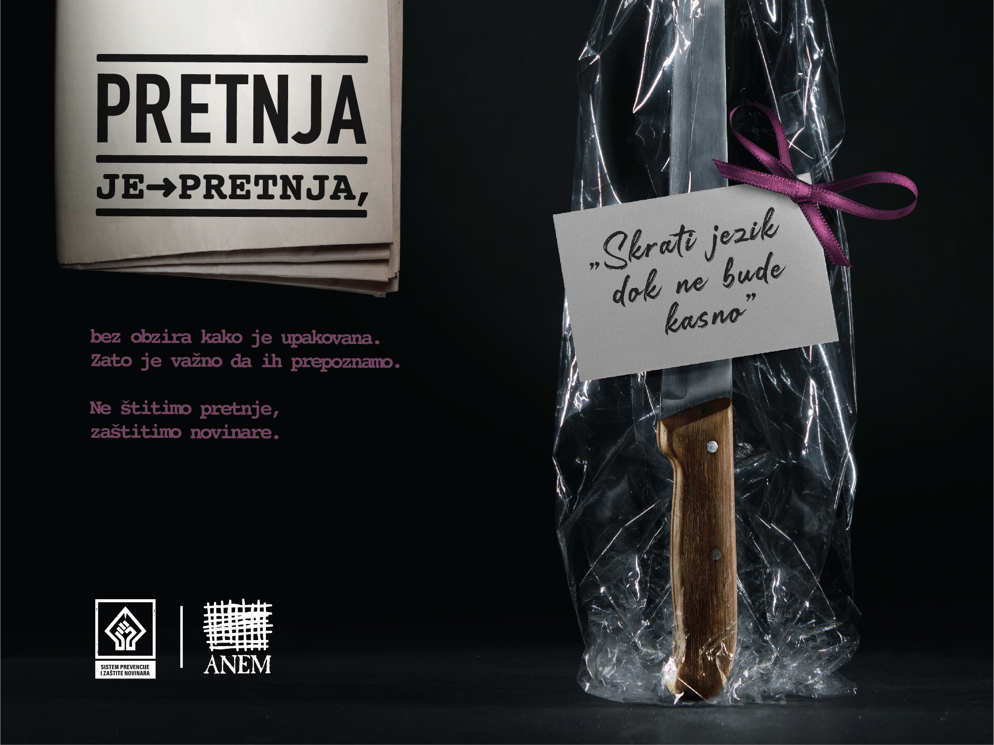 Asocijacija nezavisnih elektronskih medija (ANEM) sutra započinje medijsku kampanju „Pretnja je pretnja“, posvećenu sistemu prevencije i zaštite novinara i novinarki koja će trajati do kraja marta.