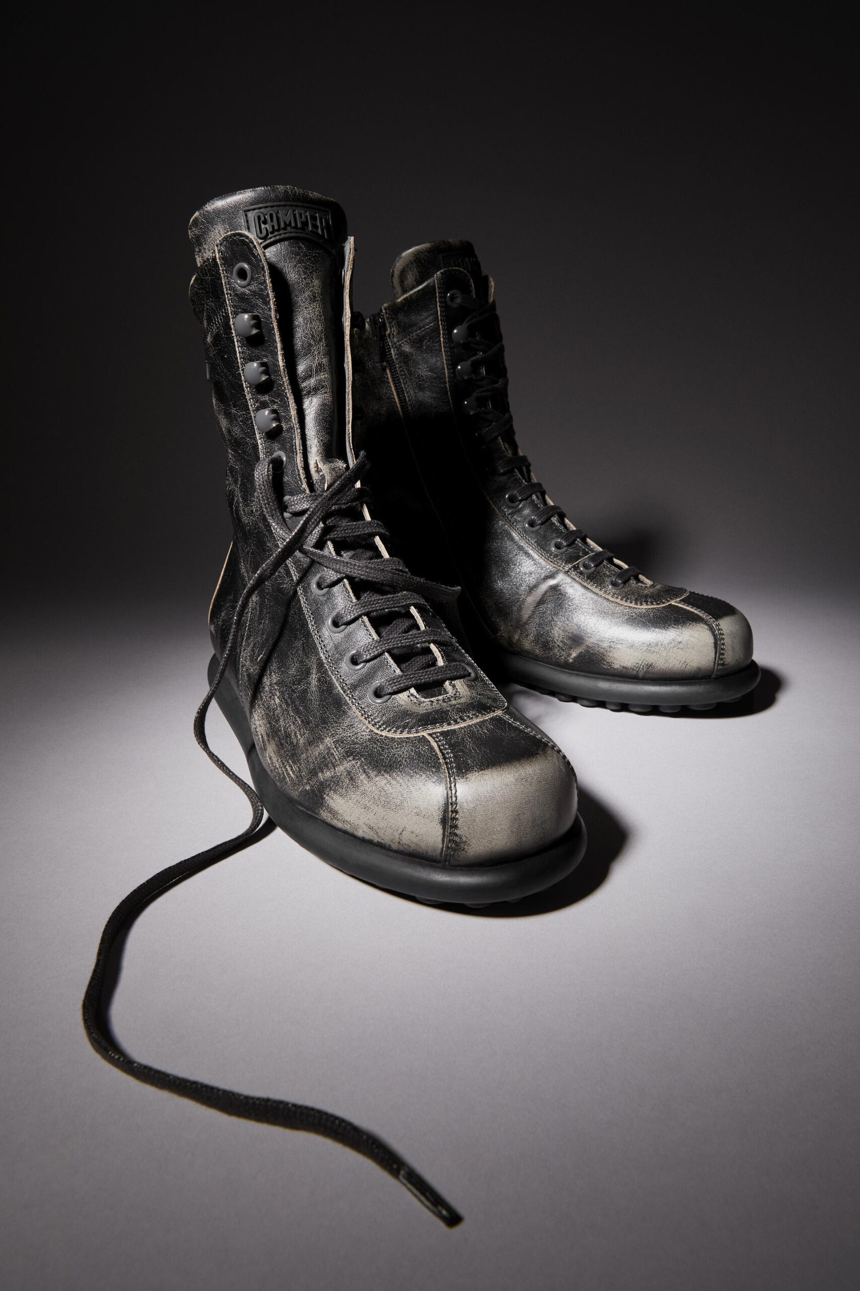 Kao Camper ikona još od 1995. godine, Pelotas Ariel je inspirisana sportskim pionirima i starim ručno šivenim fudbalskim loptama, a napravljena je u Evropi uz pomoć premium materijala. Ove sezone, duboka čizma je vraćena iz arhive i dobila je svež izgled kroz dvobojnu kožu sa ručno četkanim završnim slojem.
