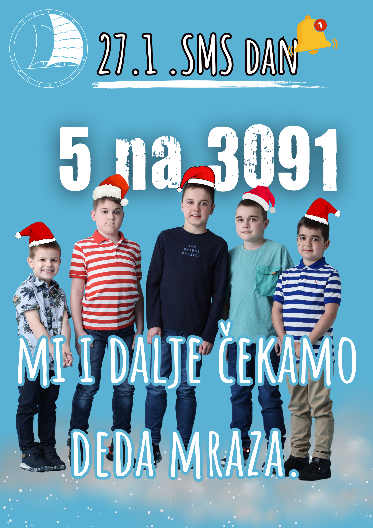 Dokažimo i pokažimo da smo humano i solidarno društvo, udružimo se za 5 koraka, 5 osmeha, 5 zagrljaja… za spas 5 dečijih života. Dovoljno je da svako od nas 27. januara na  tradicionalni SMS dan pošalje samo 1 SMS sa brojem 5 na 3091. Cena SMS-a je 200 dinara (za sve mreže: Yettel, MTS, A1).