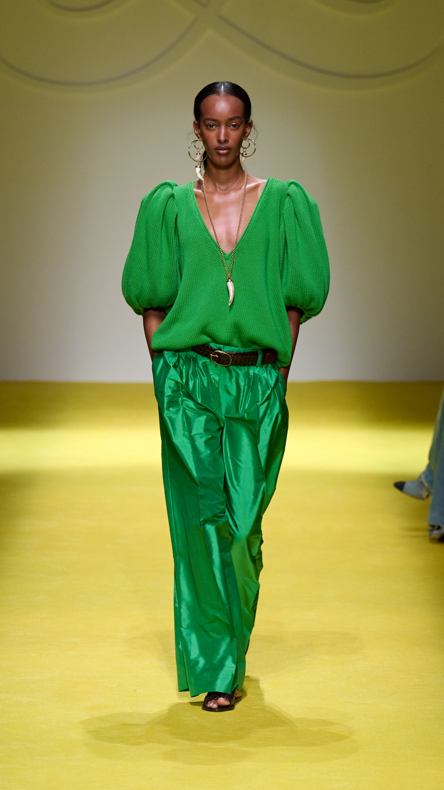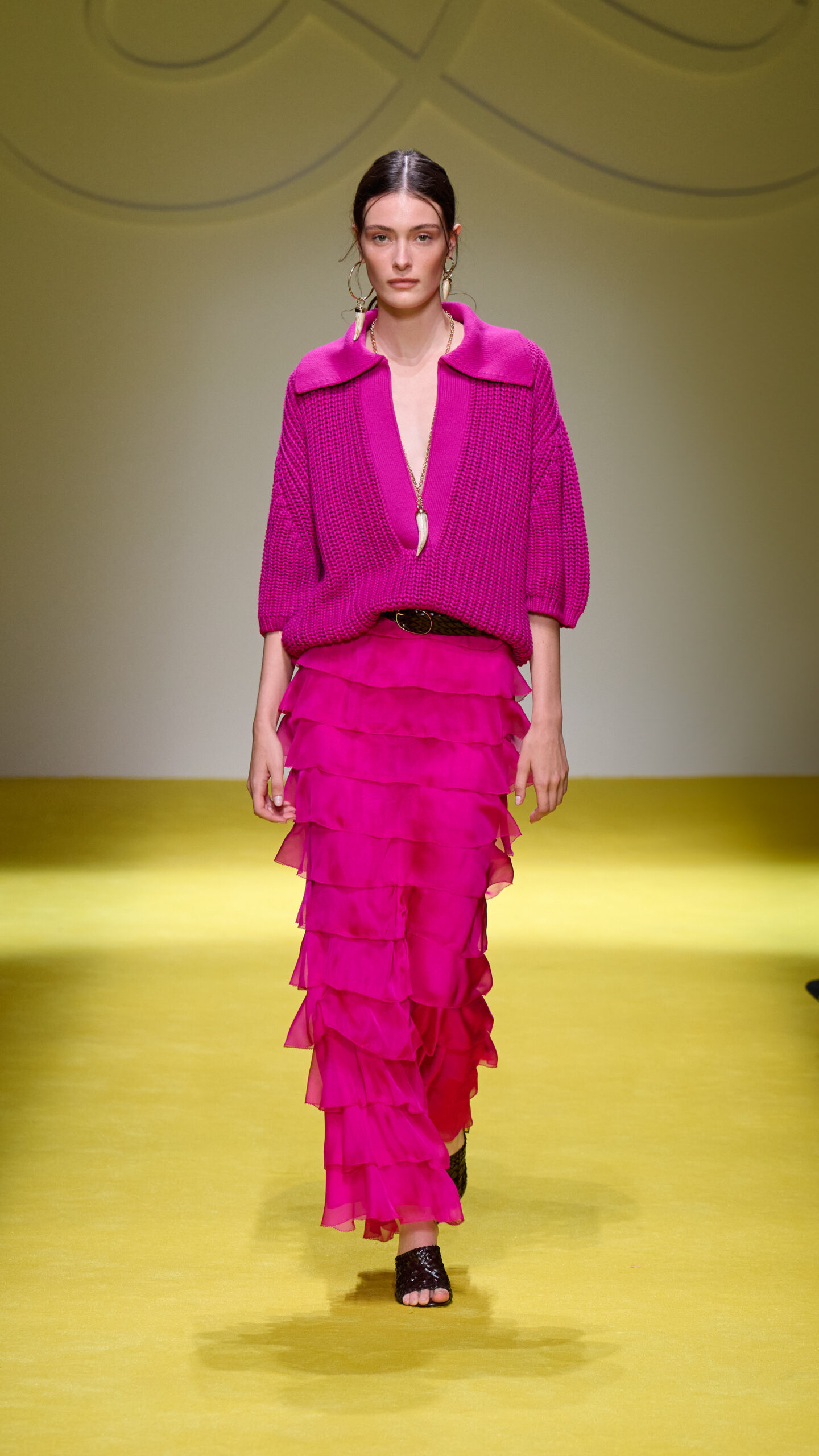 Modna revija Luisa Spagnoli kolekcija proleće/leto 2025 – ova revija predstavlja prvo prikazivanje kolekcije Luise Spanjoli van Nedelje mode u Milanu. Kolekcija elegantno spaja sofisticiranost sa savremenim duhom ženstvenosti, sa besprekorno krojenim komadima, luksuznim tkaninama i tonovima koji oslikavaju italijansku senzibilnost – od crne boje, preko tamnoplave, livadski i pastelno zelene, do akva plave, roze, fuksije, zlatno žute i narandžaste, završavajući u jasnoći bele. Pažljivo birani aksesoari upotpunjuju autfite, dodatno naglašavajući prepoznatljiv stil brenda.