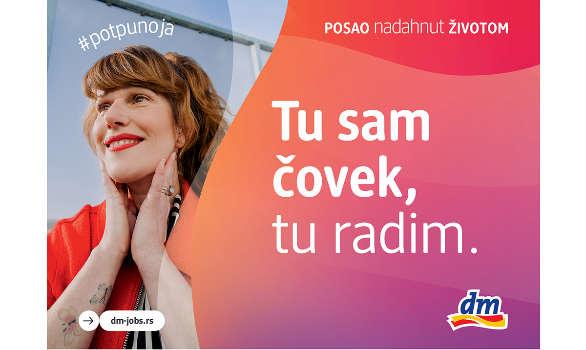Uz moderan vizuelni identitet i poruke koje ne ostaju samo na rečima, „Posao nadahnut životom“ potvrđuje ono što se u dm-u svakodnevno živi – dm nije samo radno mesto, već je i zajednica u kojoj svako ima priliku da raste, doprinosi i živi svoje #potpunoja.