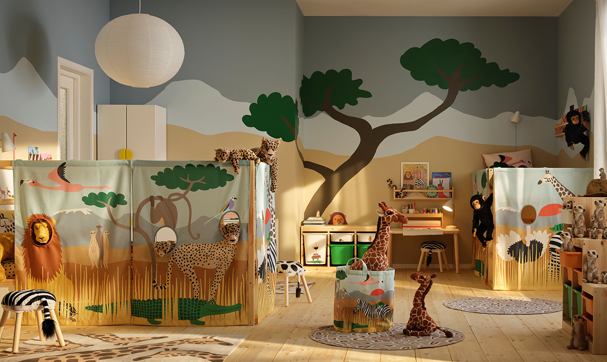 Najnovije IKEA istraživanje o igri otkriva nam da samo 51% dece smatra da ima dovoljno vremena za igru, dok više od polovine roditelja (54%) želi da provodi više vremena u igri sa svojim mališanima. SANDLÖPARE kolekcija, koja se sastoji od 29 proizvoda, budi maštu, podstiče igru i unosi istraživački duh u svakodnevni život. Pored plišanih majmuna, merkata i drugih životinja iz savane, uz ovu kolekciju stolice postaju zebre, tepisi se pretvaraju u zmije, a uz štepanu prostirku sa likom geparda i raznobojnu vreću za odlaganje, dečja soba pretvara se u pravi kamp u srcu savane.
