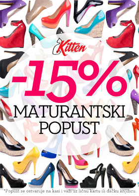 Kako bi tvoj look za matursko veče bio potpun, potrebne su ti savršene cipele. Office Shoes je obezbedio 15% popusta na sve Kitten modele iz nove kolekcije samo za „male“ i „velike“ maturantkinje. Akcija traje do kraja maja, a  na tebi je samo da izabereš savršen model i na kasi je dovoljno da pokažeš đačku knjižicu ili ličnu kartu.