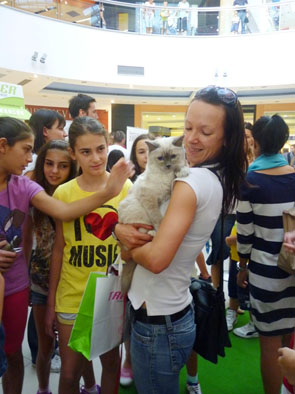 Veliki broj poštovaoca ovih kućnih ljubimaca okupio se danas u centralnom atrijumu beogradskog šoping mola, a glavne zvezde bile su mace, njih 50, koje su se takmičile u nekoliko kategorija.