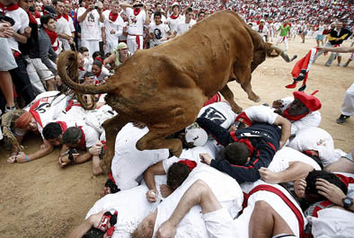Probadanja se dešavaju s vremena na vreme, ali je stampedo retka pojava za ovaj festival koji privlači veliki broj posetilaca još od kada je Ernest Hemingvej napisao „Sunce se ponovo rađa“.