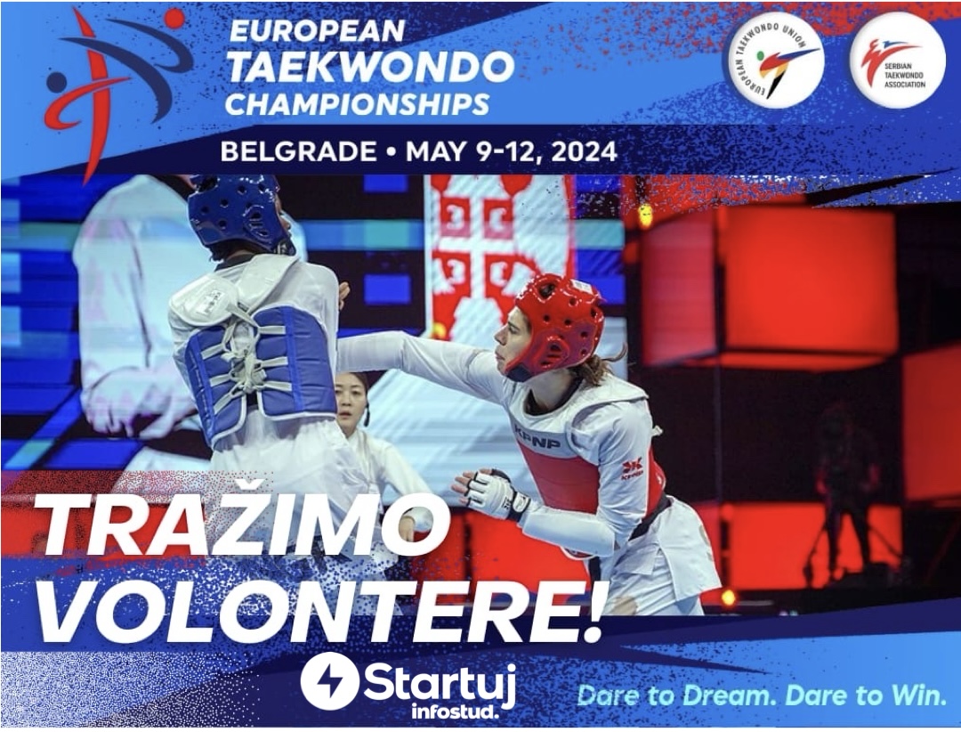 Tekvondo asocijacija Srbije traži volontere – studente za rad na realizaciji Evropskog seniorskog prvenstva koje se, po prvi put, održava u Srbiji od 9. do 12. maja 2024. godine, u Hali 1 Beogradskog sajma. Na prvenstvu će se takmičiti kako tekvondisti, tako i paratekvondisti, a očekuje se učešće više stotina najboljih sportista iz cele Evrope, kao i veliki broj domaćih i stranih novinarskih ekipa, imajući u vidu da je ovo poslednje odmeravanje snaga pred Olimpijske igre u Parizu.