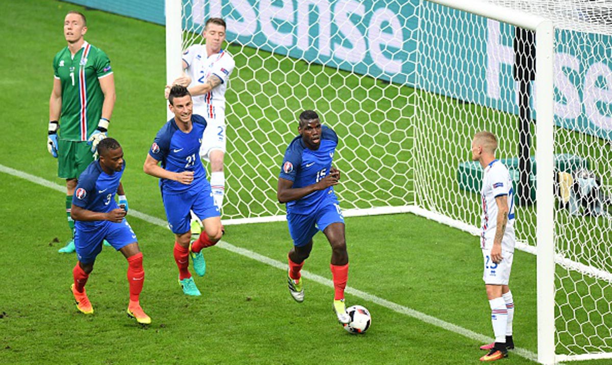 Golove za Francusku postigli su Olivije Žiru u 12. i 59. minutu, Pol Pogba u 20, Dmitri Paje u 43. i Antoan Grizman u 45. minutu. Strelci za Island bili su Kolbein Sigtorson u 56. i Birkir Bjarnason u 84. minutu.