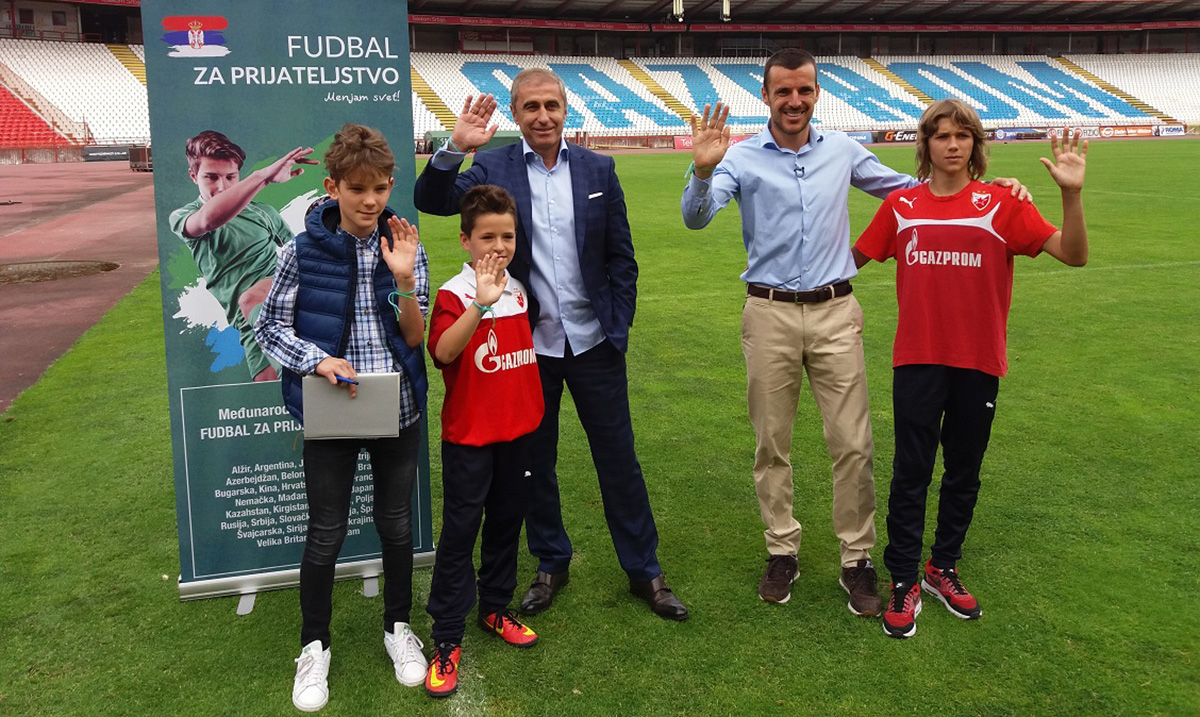 Mladi ambasadori projekta „Fudbal za prijateljstvo“ – fudbaleri FK Crvena zvezda, Luka Poljak i Stefan Maksimović – i mladi novinar Stefan Radujko – posetili su trenera FK Crvena zvezda Boška Đurovskog i kapitena Aleksandra Lukovića, u želji da im predstave program i ciljeve ovogodišnjeg centralnog Foruma projekta. Ova manifestacija će se održati od 26.juna do 3.jula u Sankt Petersburgu, i okupiće decu iz čak 64 zemlje sa 5 kontinenata. Na njoj – Luka Poljak, nastupiće kao član Zelene međunarodne ekipe koja će se takmičiti na turniru „Fudbal za prjateljstvo“ , Stefan Maksimović će biti u ulozi „mladog trenera“ Crvene ekipe ,a Stefan Radujko će izveštavati sa turnira i Foruma kao „mladi novinar“i član Međunarodnog dečijeg medijskog centra!