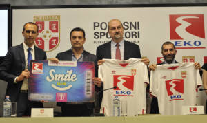 Goran Bunjevcevic-FSS, Jovan Surbatovic -generalni sekretar FSS, Vuk Radovic-generalni direktor EKO Serbia, Roberto Karahanas -direktor internacionalnih operacija Hellenic Petroleum