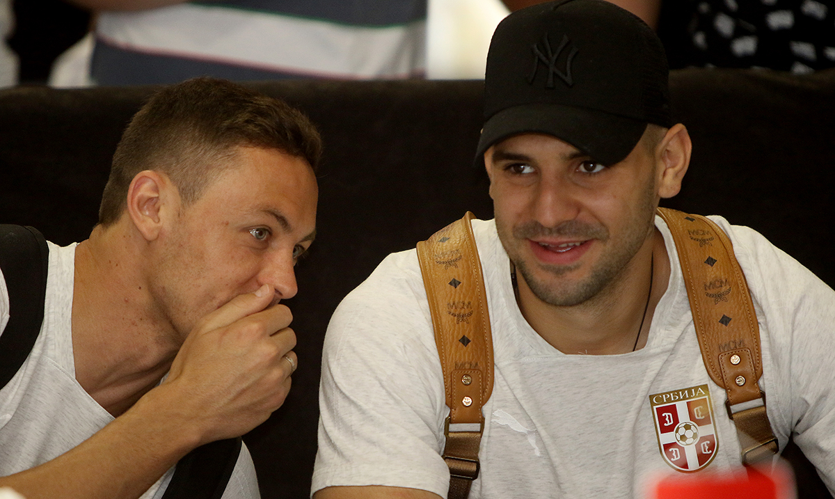 Fudbalski reprezentativci Srbije Aleksandar Mitrović i Dušan Tadić puni optimizma uputili su se ka Rusiji, gde će igrati na Svetskom prvenstvu u grupi sa Kostarikom, Švajcarskom i Brazilom.