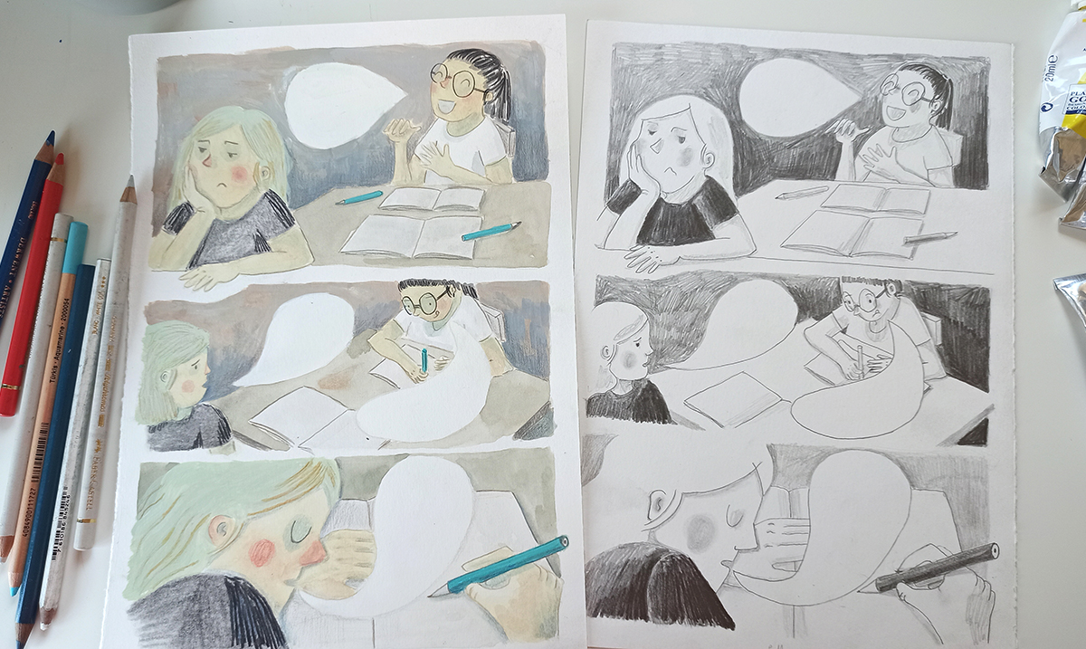 Tokom studija u Belgiji provela je mnogo vremena čitajući teorijska istraživanja o stripu, a imala je prilike da vidi i mnoge eksperimentalne pristupe, te da bude uključena u različite radionice na tom polju.