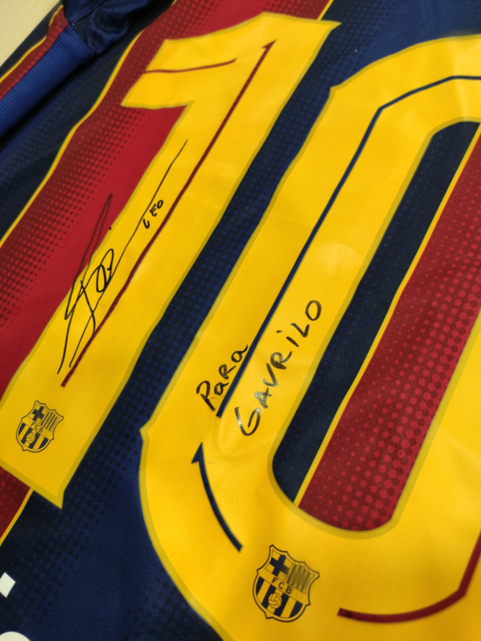 Dve najveće fudbalske zvezde današnjice ujedinile su se u borbi za Gavrilovu pobedu! Posle Ronalda, i Mesi je poslao potpisan dres za humanitarnu licitaciju kako bi se prikupila sredstva za lečenje osmomesečne bebe koja boluje od spinalne mišićne atrofije. Kompanija Mozzart, u saradnji sa organizacijom Zajedno za život, odmah je stavila još jedan vredan komad opreme na Limundo i iznela početnu ponudu od milion dinara za Barsinu desetku sa posvetom “para Gavrilo”.