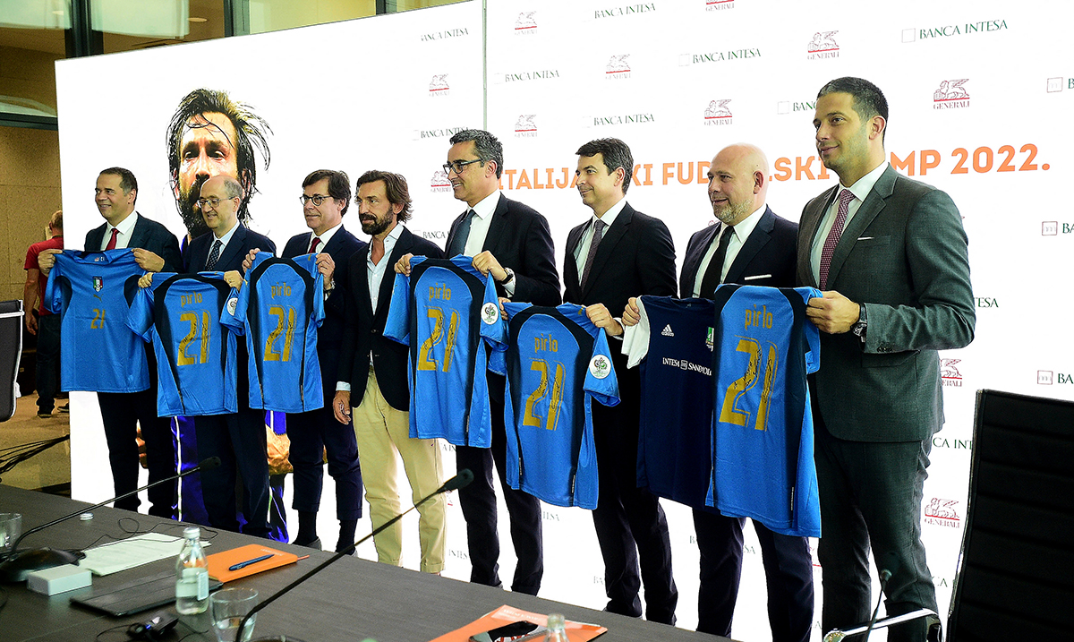 Banca Intesa and Generali Osiguranje Srbija organized a press conference on the occasion of the announcement of the Italian football camp for children, whose exclusive promoter is football legend Andrea Pirlo, who is a guest of Belgrade on that occasion.