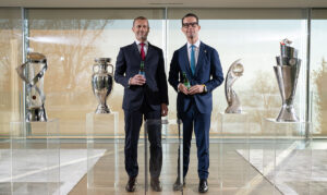 Foto_Jacob Aarup-Andersen, izvršni direktor Carlsberg Grupacije i Aleksander Čeferin, predsednik UEFA