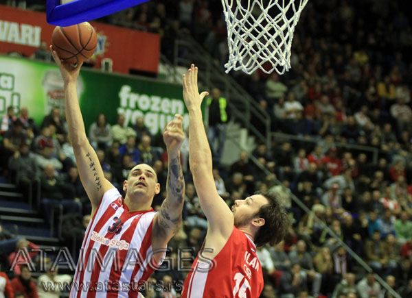 Zvezda je na poluvreme otišla sa četiri poena prednosti, pošto je Branko Lazić pogodio „trojku“.