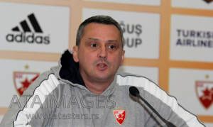 Konferencija za medije trenera KK Crvena zvezda Telekom Dejana Radonjica pred utakmicu cetvrtog (4.) kola Evrolige i duela sa turkim Fenerbahceom odrzana u pres centru Kombank arene.