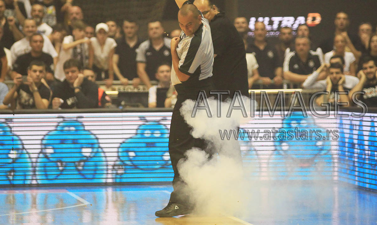 Serbian basketball League (KLS) playoffs final, game 2, between KK Crvena Zvezda Telekom and KK Partizan NIS played at Aleksandar Nikolic sports hall. Druga utakmica finala plej ofa Kosarkaske Lige Srbije (KLS) izmedju kosarkasa Crvene zvezde Telekom i P
